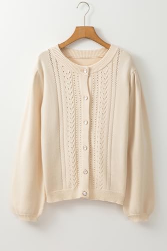 HOT ! Women's Apricot Pleated Sleeve Hollow Detail Button Sweater Cardigan