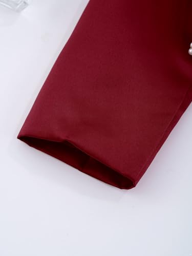 • The bolero is designed with long sleeve, open front with a hidden button closure, faux pearl trim, satiny surface and fully lined