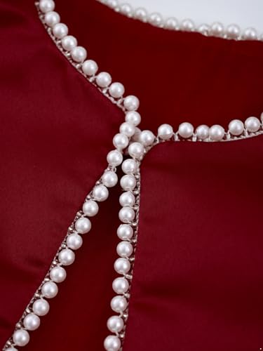 • Faux pearl trims look exquisite and gorgeous. Satin cardigan work well with sleeveless dress, sling dress, tube dress and more