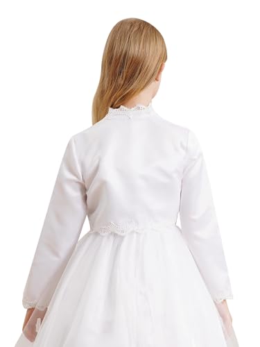 Kids Girls Long Sleeve Sparkle Bolero Cardigan Ruffle Trim Open Front Satin Shrug Cropped Outerwear Tops 6