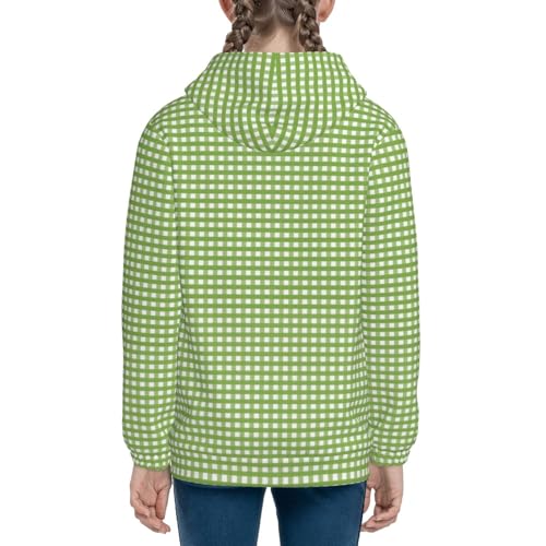 Green Gingham Kid Hoodies Boys Zip Up Sweatshirts Girls Pullover with Pocket 3