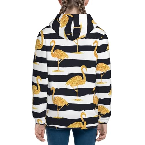 Gold Flamingo Kid Hoodies Boys Zip Up Sweatshirts Girls Pullover with Pocket 5