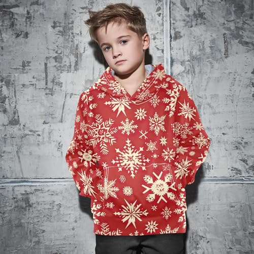 Kids Hoodies Sweaters Christmas Xmas Snowflake Hooded Sweatshirts with Big Pockets for Boys Girls B0400091 5