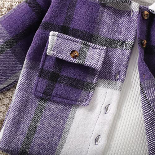 Toddler Baby Boy Girl Fall Winter Clothes Plaid Flannel Shacket Long Sleeve Button Jacket Casual Outwear Coat 3