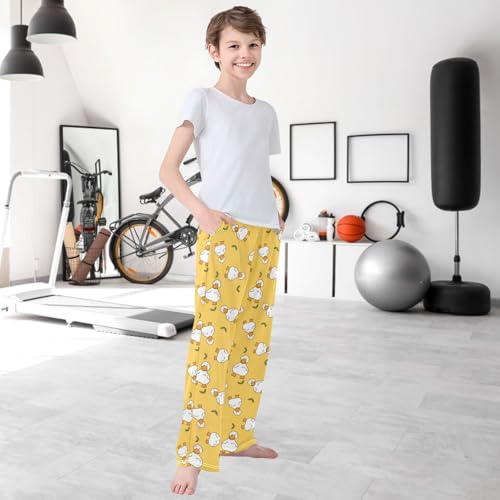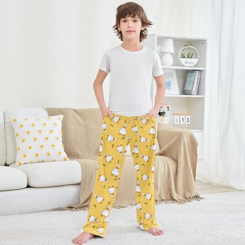Boy's Pj Pants Cartoon White Duck Grass Yellow Lounge Bottoms Elastic Waist Kids Joggers with Pockets Size 6-14 7