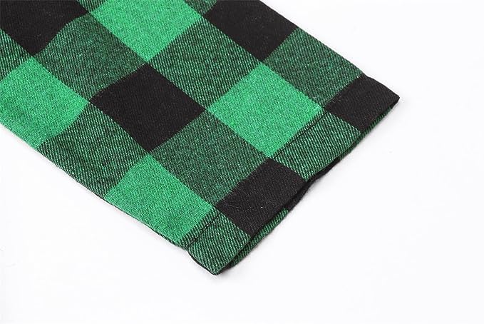 Schbbbta Kids Plaid Pajamas Set, Girls Boys 2 Pcs Pajamas Set Long Sleeve Sleepwear Button Down Pjs Black Green 7