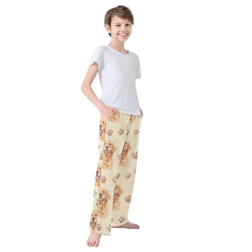 HOT ! Pajama Bottoms, Golden Retriever with Brown Paw Pajamas Pant Lounge Wear Sleep Long Pants Casual Sleepwear Pjs