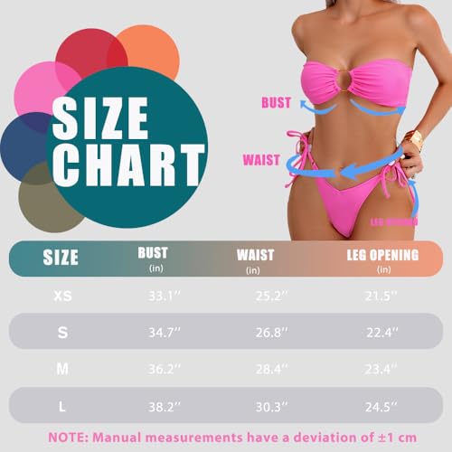 Women’s Sexy Bikini Set – O Ring Strapless Tie Back Top and Thong Bottom with Side Strings, Two Piece Swimsuit 7