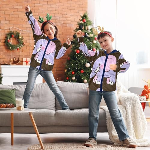 Cute Elephant with Purple Clouds Toddler Fleece Jacket Girl Boys Hooded Fleece Jacket Coat Warm Outwear Zip-up 3-10T 3