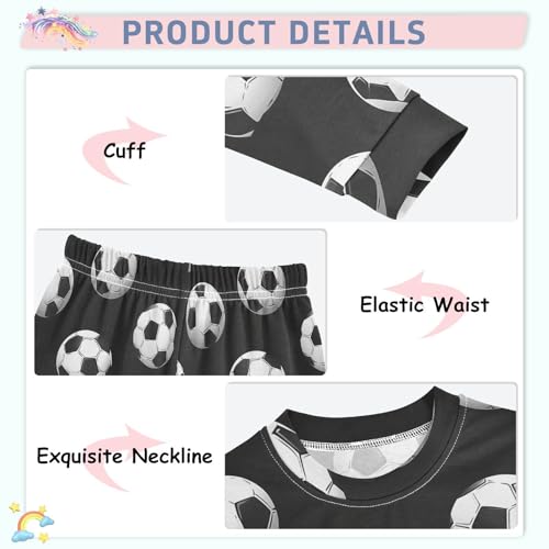 Pigsaly Pajama Set 2 Piece Soccer Balls Black Pajama Sets Long Sleeve Pjs Sleepwear 3T 5