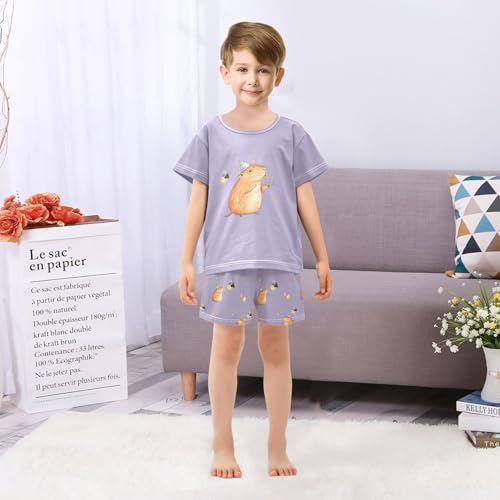 senya Cute Capybara Birthday Purple Summer Pajamas Set Short Cotton Sleepwear 2 Piece 1