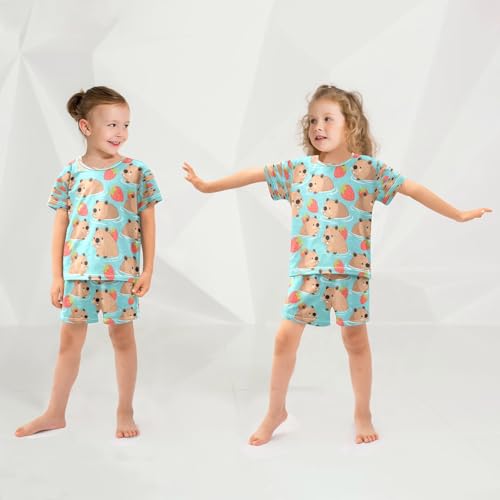 senya Short Sleeve Pajamas Sets Summer Cotton Sleepwear Red Strawberry Cute Capybara 2