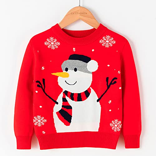 Toddler Boys Girls Christmas Sweater Long Sleeve Crewneck Knitted Pullover Snowman Print Stylish (Red, 6-7 Years) 1