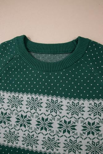 HOT ! Women's Green Christmas Snowflake Dotted Print Round Neck Sweater - Cozy & Chic