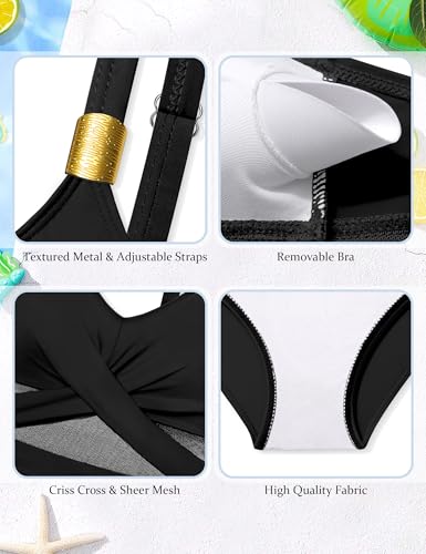 Girls Swimsuit Criss Cross One Piece Swimsuits Wrap Tie Back Sheer Mesh Bathing Suit with Gold Metal Swimwear 9-16Y 1