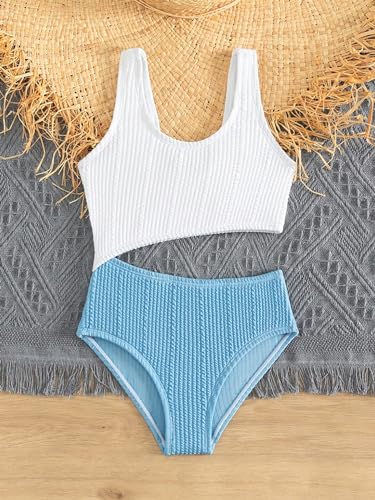 WDIRARA Girl's One Piece Swimsuit Crochet Cut Out Swimwear Textured Color Block Swimsuits 6
