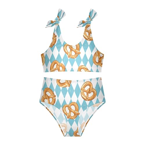 Exnundod Toddler Girls Swimsuit Traditional Baked Pretzels Pattern Two Piece Bikini Sets Bathing Suit Kids Swimwear 3-12T 4