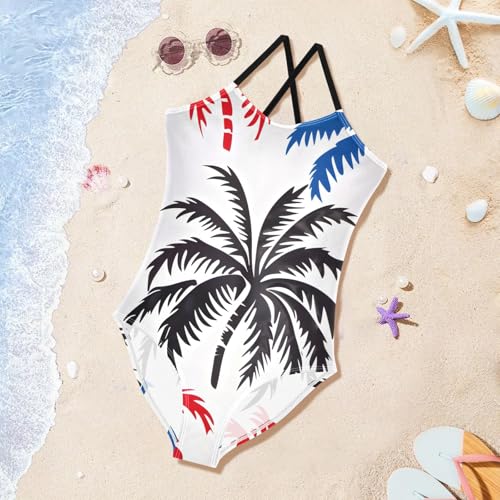 Bolaz Girls Swimsuits One-Piece Bathing Suits Multicolor Kids Sport Summer Beach Swimwear for 3-10 Years Old-Multicolor Palm Trees Pattern 1