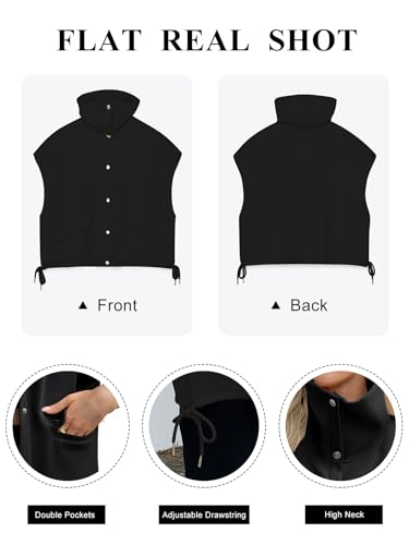 • DESIGN: This oversized outerwear vest combines fashion and practicality. The solid color and minimalist design make it easy to match. Snap button front closure for easy on and off, adjustable drawstring sides for a customized fit