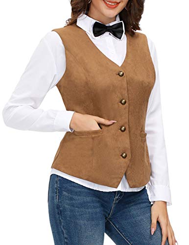 • Women's Faux Suede Vest Coat with Two Functional Pockets.The Features in Full Lining, V-Neck, Sleeveless,Button Up Design