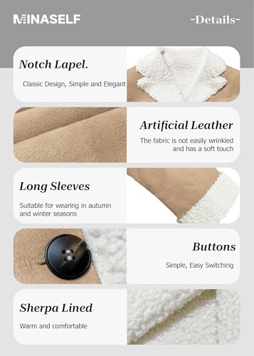 More information about Mina Self 2025 Winter Women's Faux Suede Jacket Coat - Sherpa Lined Fur Leather Warm Thick Shearling Fleece Fuzzy Outerwear