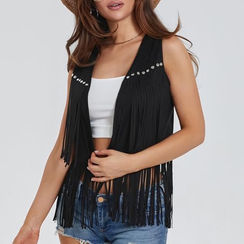 • OCCASION:Fringe Vest Women ,Hippie vest is Suitable for daily wear and outdoor activities in various seasons, from spring to winter. Suitable for daily casual wear, rodeo, holiday wear, hippie wear, motorcycle wear, nightclub wear, New Year party, Halloween dress, rock music, etc. 60s outfits for women, cowgirl costume, hippie vest for women, black fringe vest for women