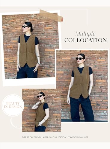 • Casual Elegance:The vest's casual yet elegant design makes it a great addition to a variety of outfits,enhancing a simple look with its structured yet relaxed style. It can be dressed up or down, suitable for casual outings, office environments, or light social events.