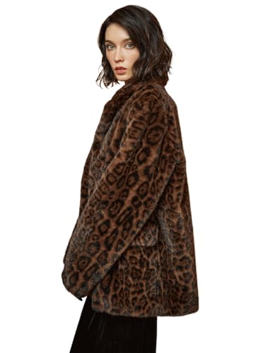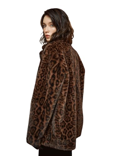 More information about BEAUTELICATE Women Leopard Print Fleece Coat Loose Fur Coat with Pockets Lapel Faux Fur With Satin Lining