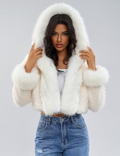 More information about Women's Fluffy Cropped Faux Fur Hooded Jacket Coats,Shaggy Mini Short Crop Cardigan Outwear Parka Tops