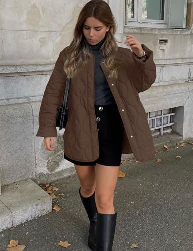 Flygo Women's Oversized Quilted Lightweight Jacket Button Down Puffer Padded Outerwear with Pocket(Coffee-L) 1