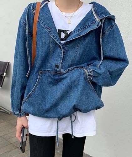 • Features:Baggy Looses Jeans Pollovers,Long Sleeve with Elastic Cuff,1/2 Button Down Front,V Neckline,Hooded,Hoodies Sweatshirt,Big Kangaroo Pocket,Drawstring Hem,Vintage Denim Blouse,Boyfriend Outdoor Streetwear