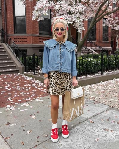 Takaneo Womens Denim Jacket Peter Pan Collar Cute Cropped Long Sleeve Shirts Jean Coat with Pockets 5