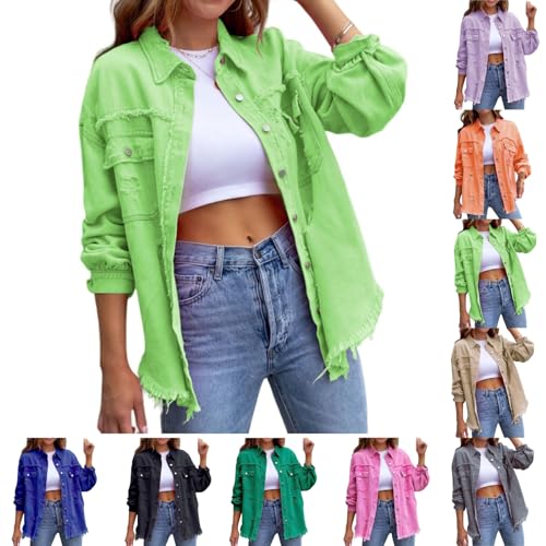 HOT ! Womens Oversized Denim Jacket 2025 Fall Casual Ripped Frayed Shacket Jean Coat Western Shacket with Pockets