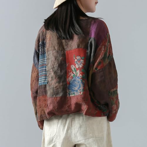 More information about Cotton Linen Blend Spring Patchwork Short Jacket for Women - Lightweight Casual Outerwear