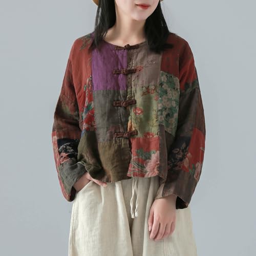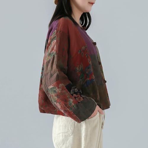 HOT ! Cotton Linen Blend Spring Patchwork Short Jacket for Women - Lightweight Casual Outerwear