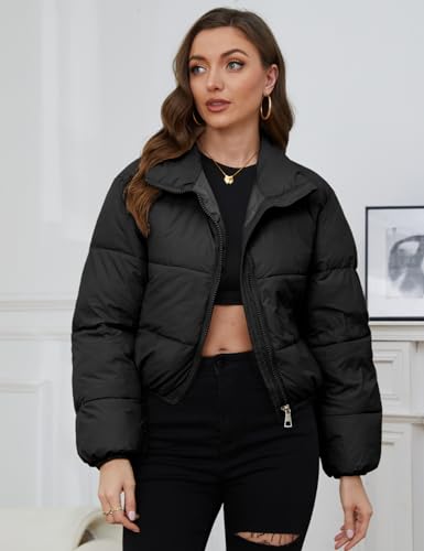 Yimoon Women's Cropped Puffer Jacket Quilted Lightweight Stand Collar Full Zip Short Down Jacket 1