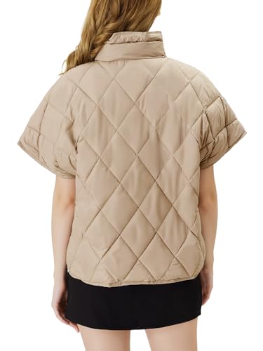 Women's Puffer Vest Short Sleeves Lightweight Outerwear Vests Quilted Jacket Coat with Pockets 4
