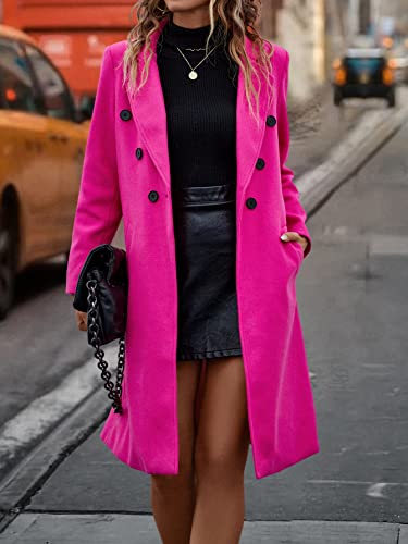 Women's Coats Women's Winter Coats Lapel Neck Double Breasted Overcoat Warmth Special Autumn and Winter Fashion Novel (Color : Hot Pink, Size : X-Small) 1