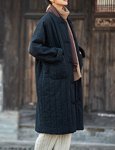 NFYM Women's Lightweight Quilted Longer Length Coat Winter Coats for Women Retro Chinese Casual Jacket 6