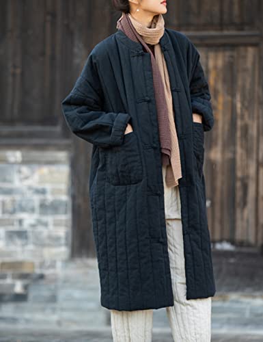 NFYM Women's Lightweight Quilted Longer Length Coat Winter Coats for Women Retro Chinese Casual Jacket 7