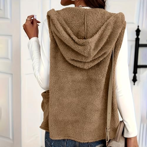 Sherpa Vest Womens Sleeveless Fleece Jacket Coat Open Front Fuzzy Vest Fall Winter Warm Clothes with Pockets 6