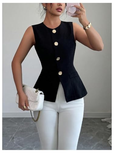 • Features: Metal button, sleeveless, round neck, split hem, slim fit, solid color, suit vest for women