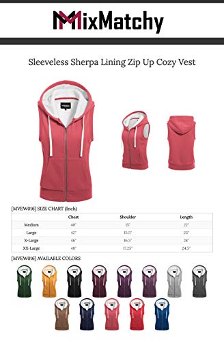 MixMatchy Women's Casual Basic Sherpa-Lined Fleece Full Zip Up Cozy Hoodie Vest 3