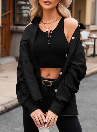 • Design:Womens fashion 2024 casual western shacket featuring lapel collar, front button closures, drop shoulders, pockets, full sleeve with cuff buttons, solid color. This corduroy shacket is the perfect addition to any wardrobe.