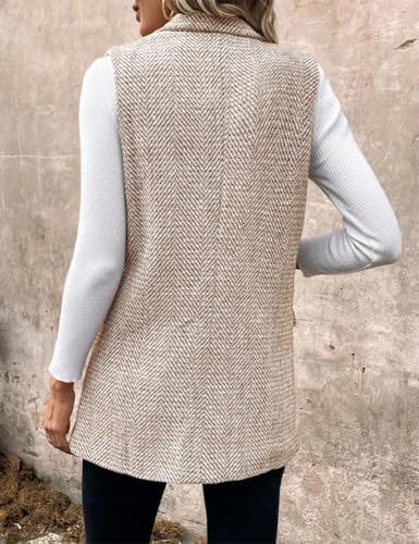 IDEALSANXUN Womens Herringbone Print Vest Fall Winter Double Breasted Sleeveless Blazer Jackets 4