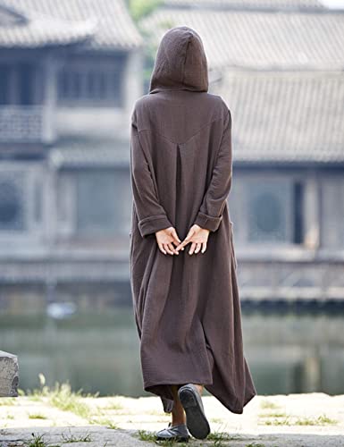 Women's Long Trench Coat Cotton Linen Hoodie Jacket Chinese Style Outwear with Pockets 4
