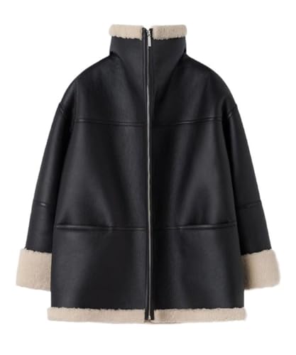 More information about Women's Faux Shearing Moto Bomber Jacket Sherpa-Lined Coat Winter Aviator Leather Coat Outerwear