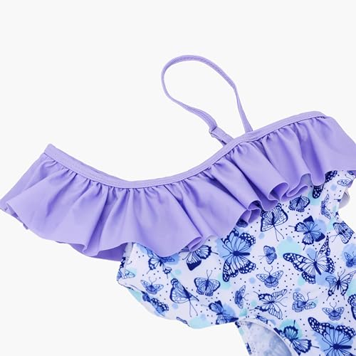 LIZENS Girls' Swimwear Cut Out Trim Ruffle One Piece Beach Bathing Suit for Girls Floral Toddler Kids Swimsuit 2