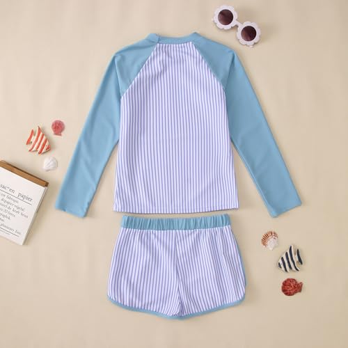 Ritatte Girls Rash Guard Swimsuit 2 Pieces Stripe Bathing Suit Long Sleeve Rashguard Beach Shorts Summer Swimwear 7-12T 3