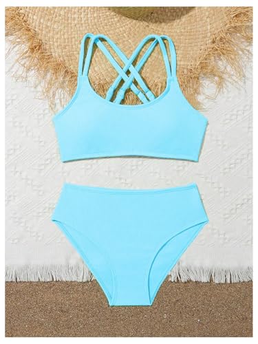 • Feature: 2 Pieces, Criss Cross Back, Spaghetti Strap, Solid Color, Removable Padding, Cute Bikinis for Girls